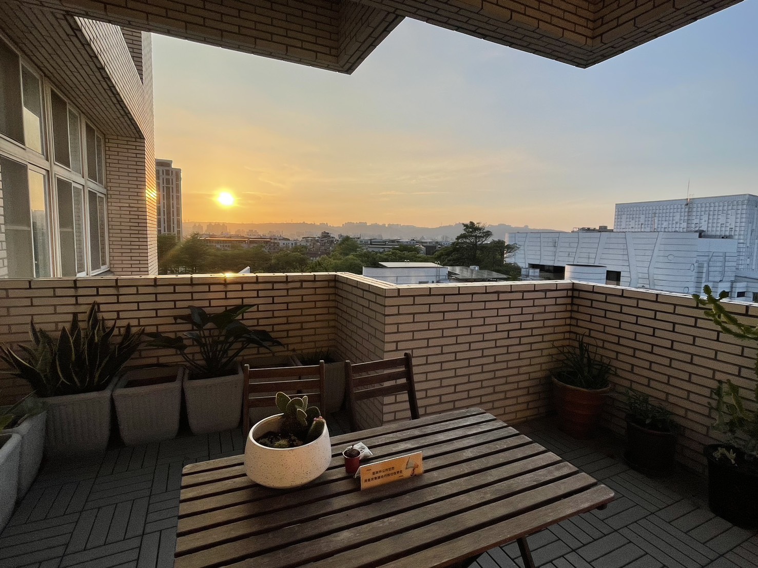 伴隨綠植、陽光與一杯咖啡,這裡是藝政所最安靜的城市花園。 走進這個小空間,讓晚霞為學術思維帶來一點生活的平衡。 |