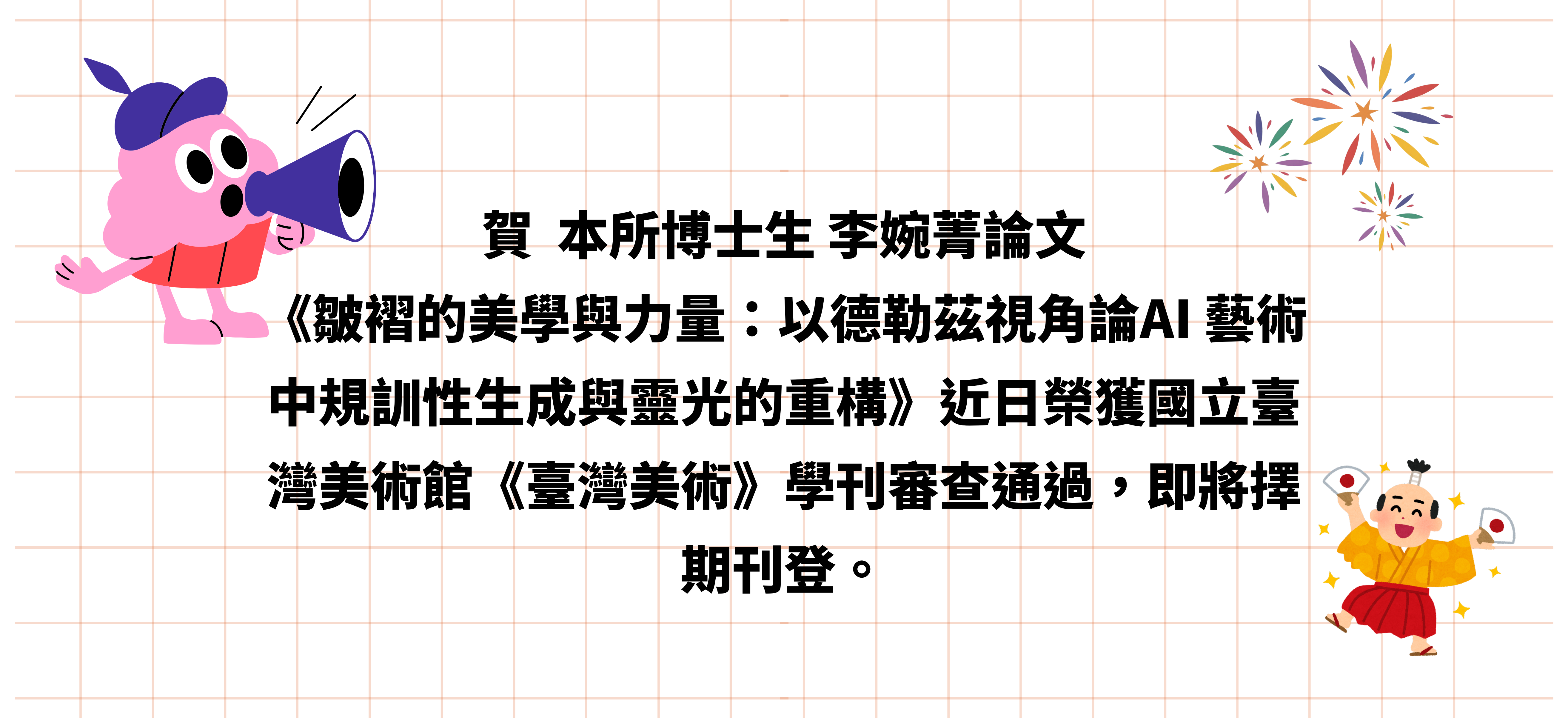 賀!本所博士生李婉菁論文榮獲國立臺灣美術館《臺灣美術》學刊審查通過,即將擇期刊登。