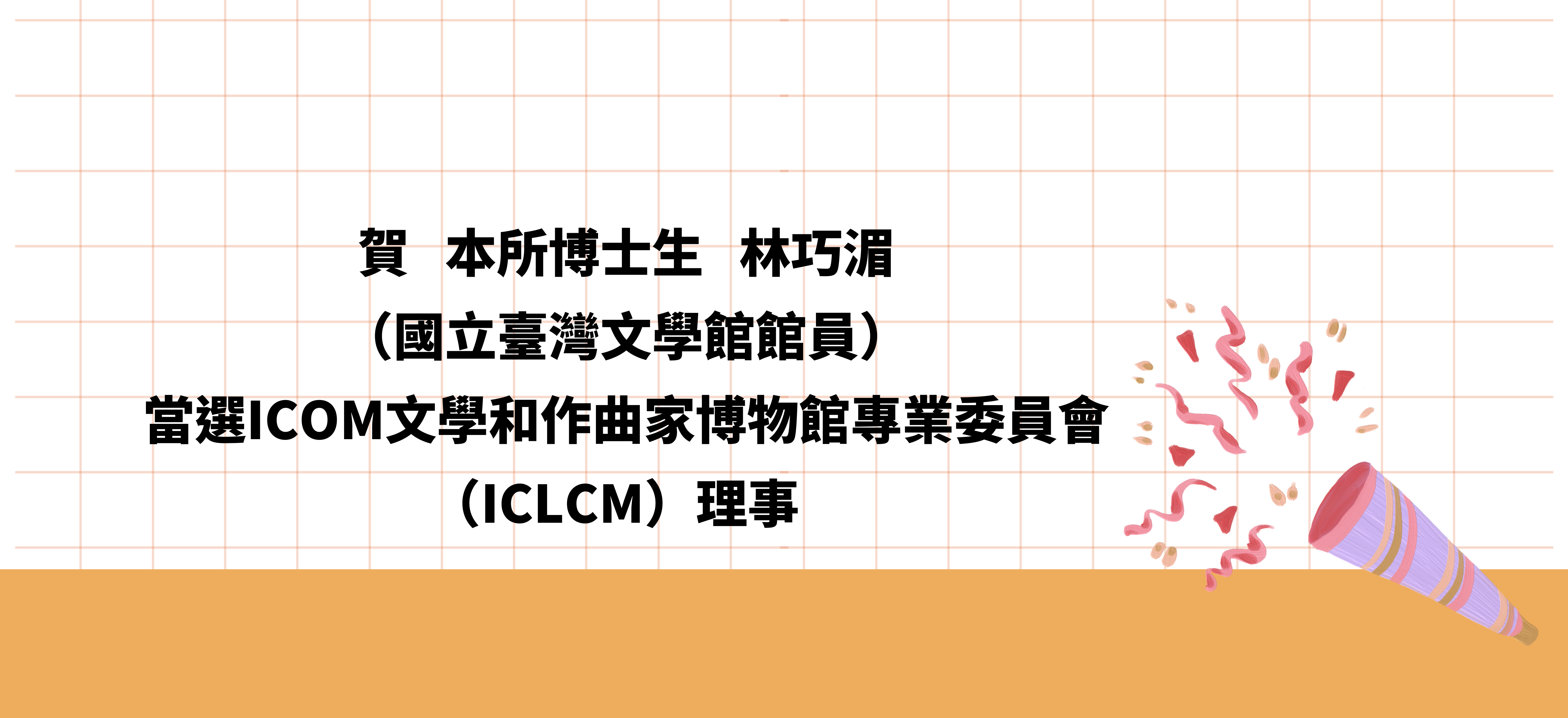 賀!本所博士生林巧湄(國立臺灣文學館館員)當選ICOM文學和作曲家博物館專業委員會(ICLCM)理事