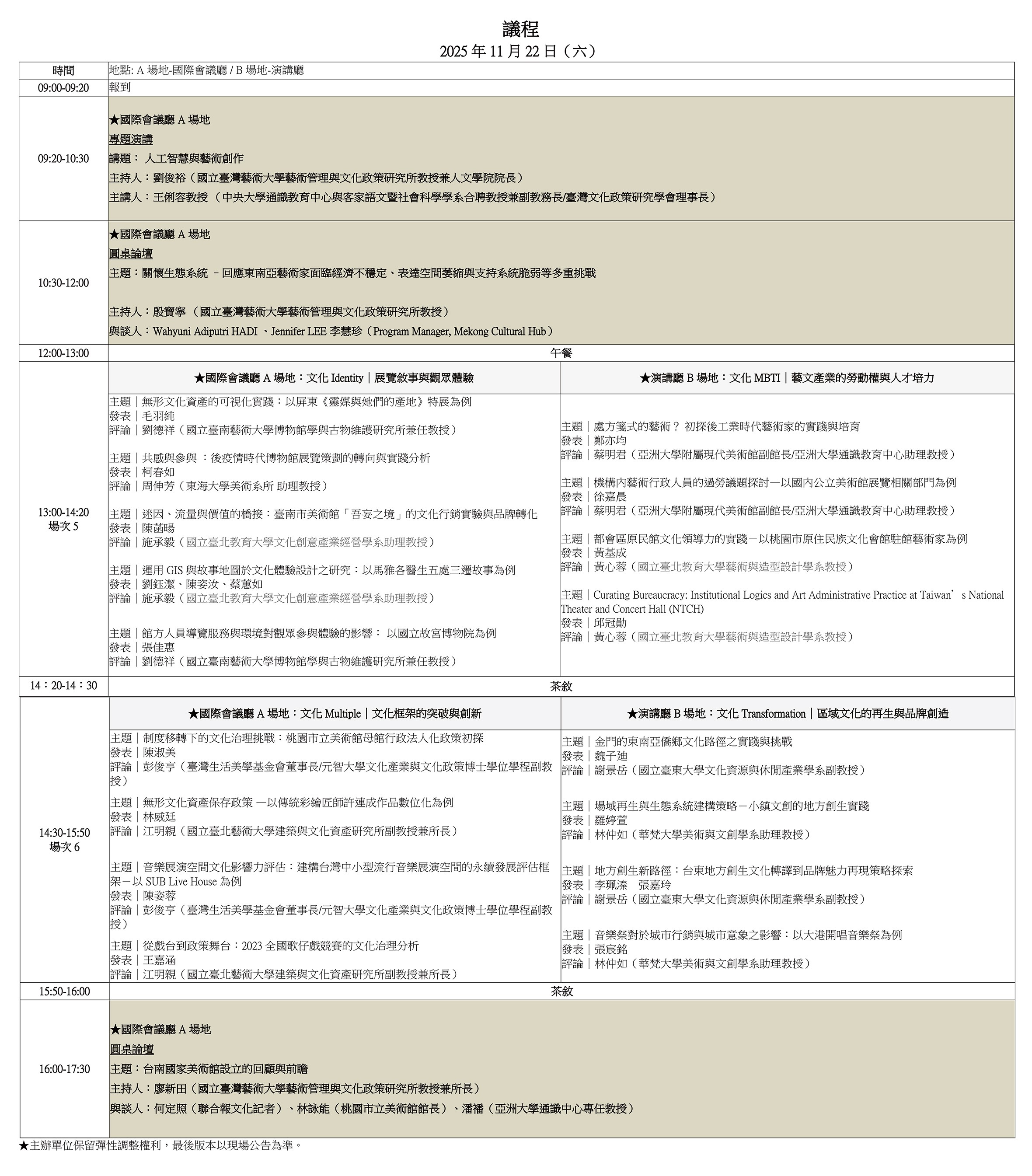 *主辦單位:國立臺灣藝術大學人文學院藝術管理與文化政策研究所