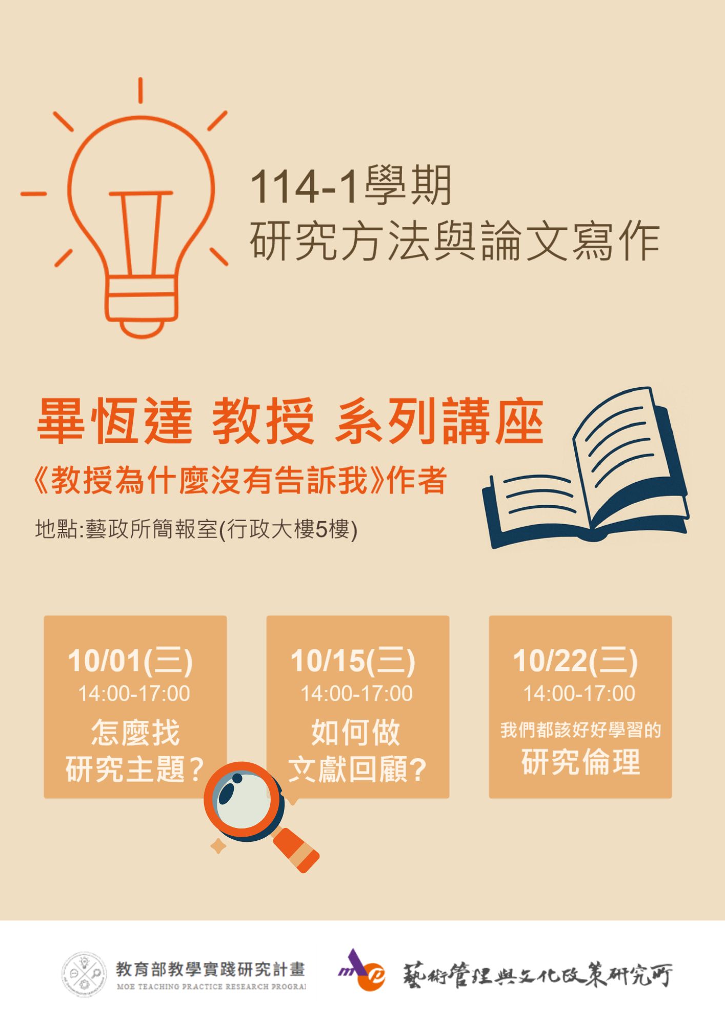 日期:114/10/01、15、22 講者:畢恆達 教授